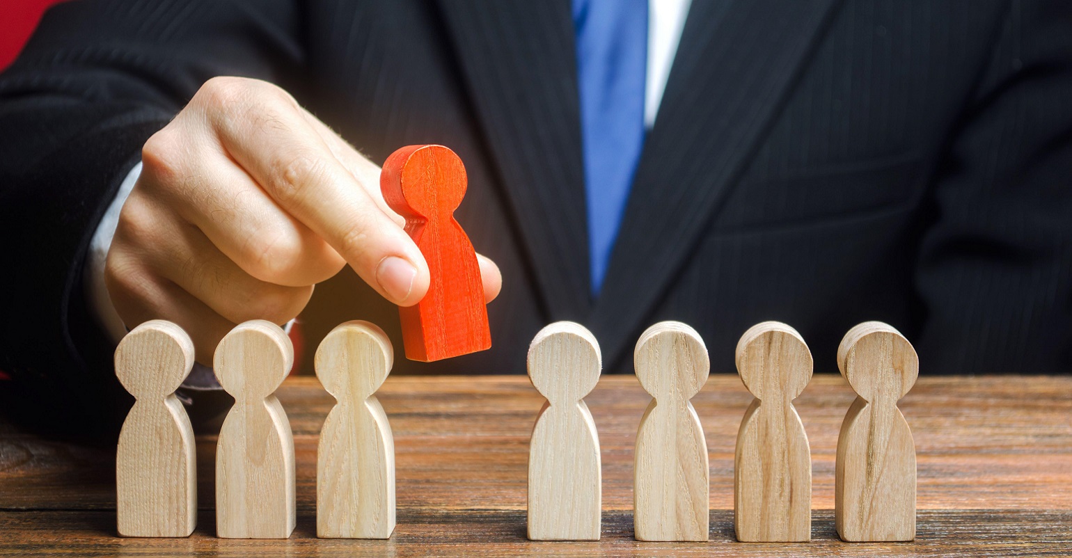 person adding another wooden person to line of wooden people